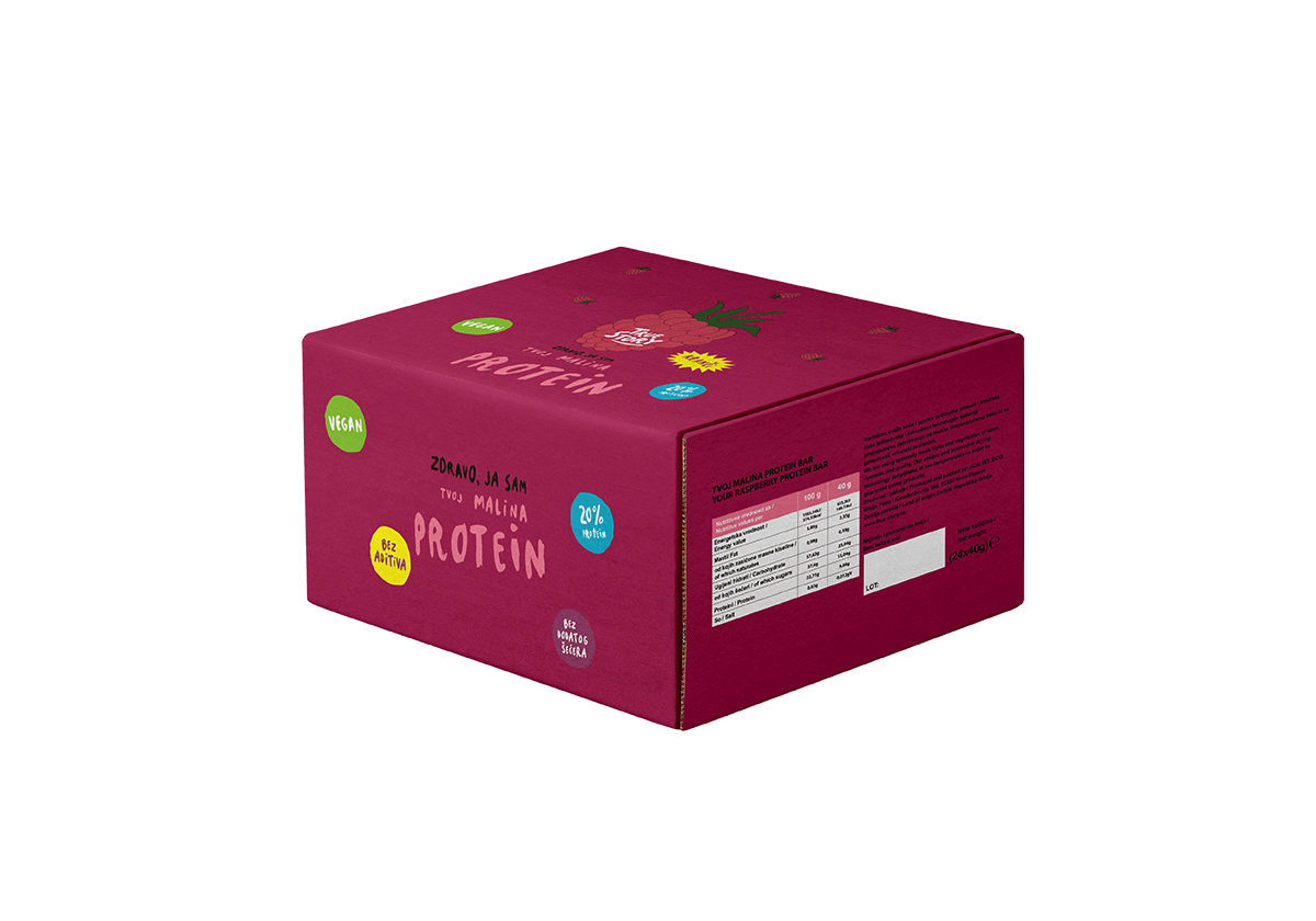 Zdravo, ja sam tvoj skroz novi Malina protein, sa 20% proteina! Kranči sam, nepredvidiv i inovativan, a sačinjavaju me jedino sušena urma, sojin proteinski koncentrat, Liofilizovana malina i badem! Stvoren sam za svakoga ko želi da doda malo proteina u svoju svakodnevnu rutinu, ali bez dodatog šećera ili aditiva!